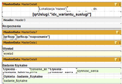 Szablon edycji jest raportem odpowiedzialnym za zawartość medyczną związaną z realizacją usługi i w połączeniu z raportem nadrzędnym stanowi dokument będący elementem dokumentacji medycznej powstałej w wyniku realizacji usługi.
