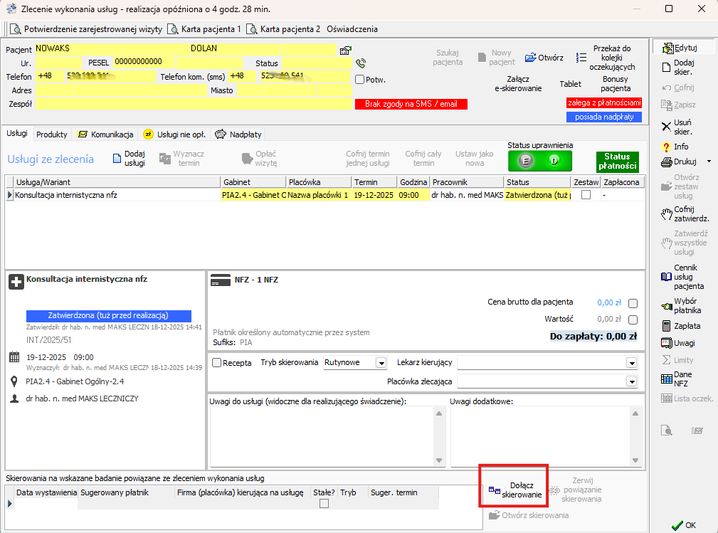 W otwartej formatce Zlecenie wykonania usług naciskamy przycisk Dołącz skierowanie.
